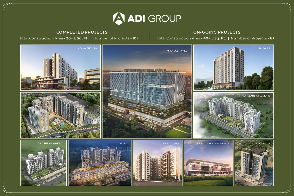 Siddhashila and Adi Group are trusted real estate developers with a combined portfolio of 56 lakh sq.ft of construction area delivered and 63 lakh sq.ft of construction area in progress. The portfolio spans across residential and commercial developments in multiple locations of Pune. They are known for bringing decades of expertise, delivering thoughtfully designed homes with quality, trust, and long-term value.